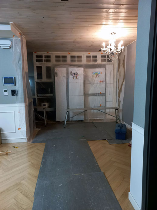 작업중 분진과 쓰레기에 바닥과 가재도구에 피해가 가지않도록 공사에 들어가기전 보양을 합니다.