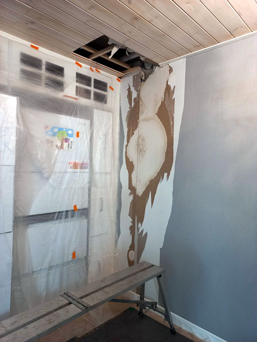 침수된 석고보드를 제거하고 재시공도 합니다.