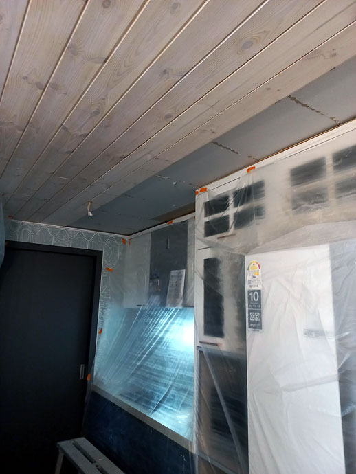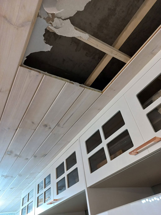 침수피해부분 원목 천정재 몇장은 제거해고 새로 시공할 것입니다.