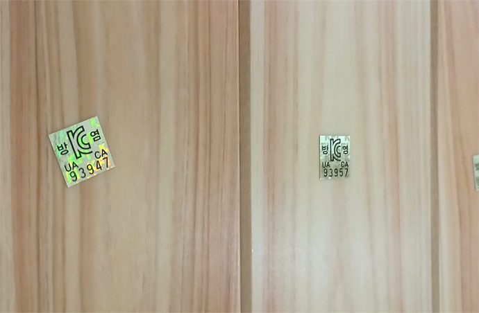 모든 부재 한장한장에는 방염 인증 홀로그램 마크가 붙어있습니다.