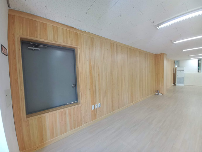 한쪽 벽면을 모두 무절 방염루바 로 시공 마감하였습니다.