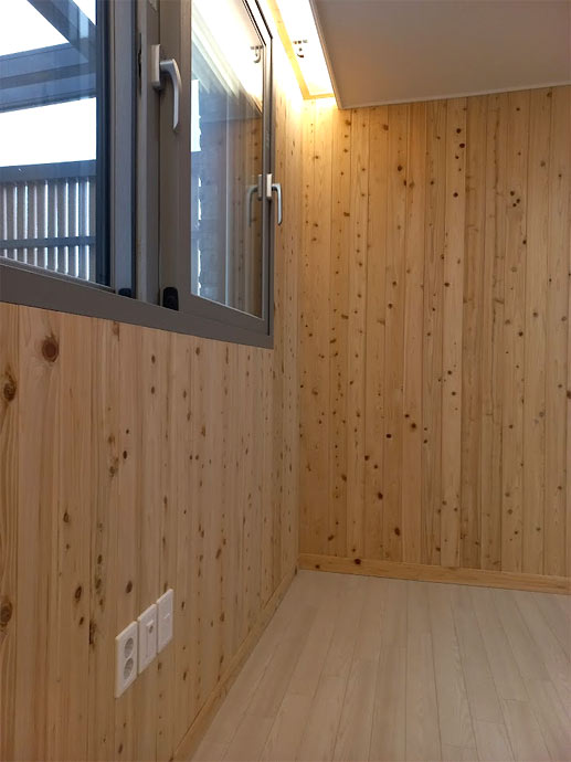 독점공급계약을 맺고 일본 산지에서 가공하여 직수입한 시즈오카산 편백나무(히노끼) 루바가 사용되었습니다.