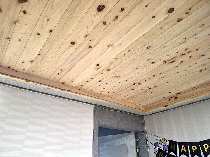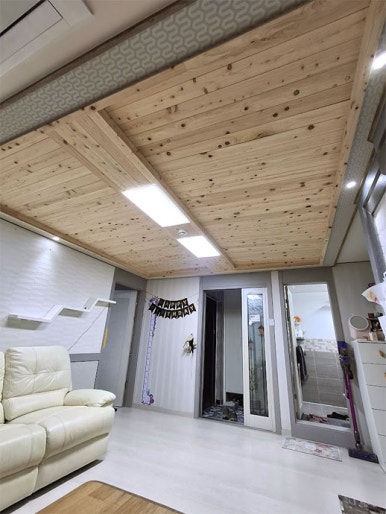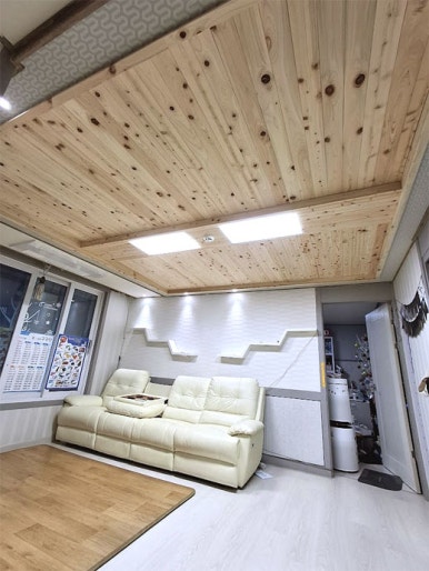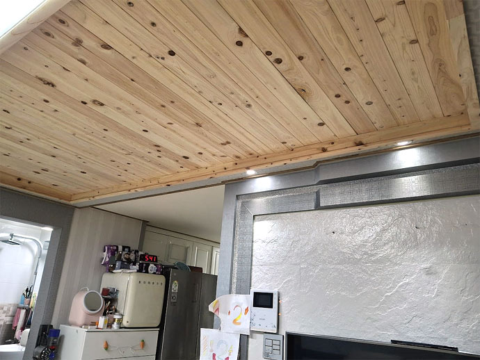 경기도 수원의 빌라의 미송으로 시공된 천정입니다.