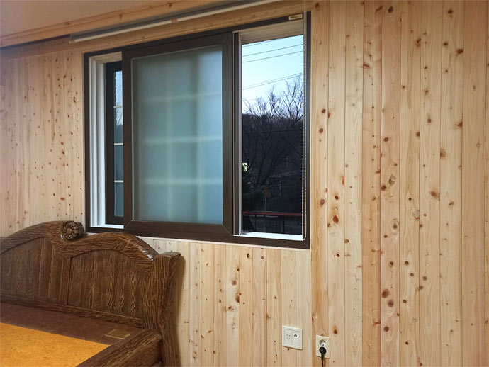 창문 주위에는 몰딩처리를 하여 틈이 없도록 하여 단열효과 상승과 이물질이나 벌레가 침투하지 못 하도록 하였습니다.