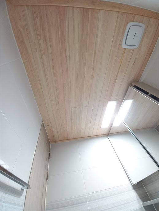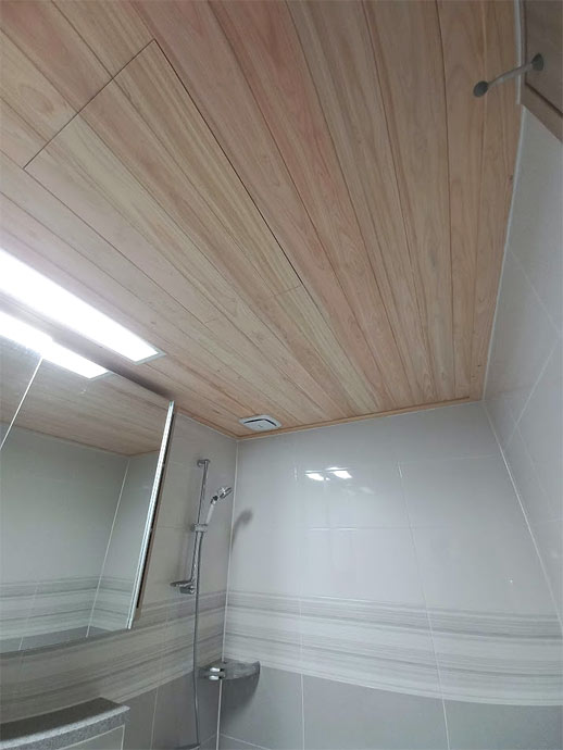 기존의 플라스틱 천정에서 편백나무 원목 천정으로 교체예정입니다.