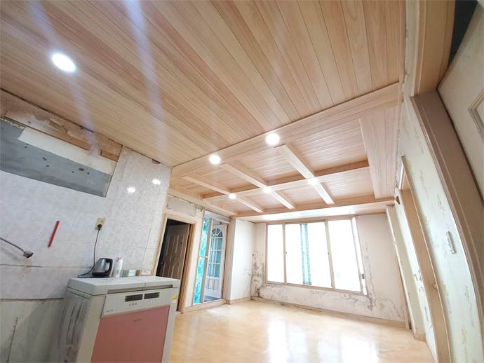 당사 목재사업부(후지히노끼)는 거실 천정 공사를 담당합니다.